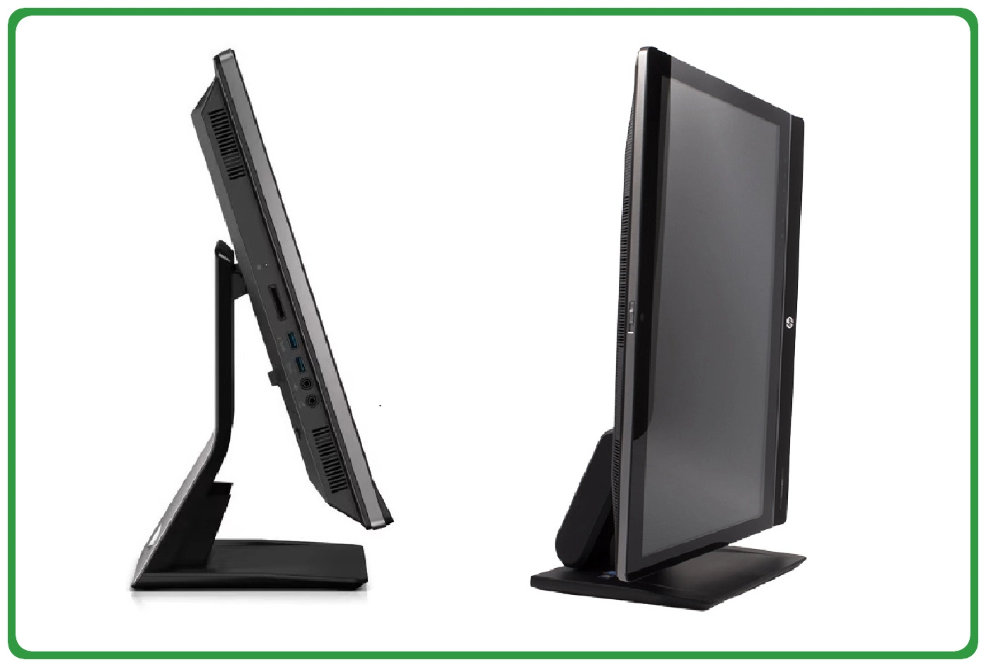 Obudowa HP 800 G1 wykonana została z wysokiej jakości mieszanki tworzyw sztucznych. Jej zaokrąglony tył oraz matowy, czarny kolor dodają urządzeniu elegancji. Całość konstrukcji może opierać się na prostej podpórce monitorowej lub jednej z zaawansowanych podstawek umożliwiających podniesienie ekranu, oraz ustawienie monitora w orientacji pionowej. Obudowa HP 800 G1 jest kompatybilna ze standardem VESA, dzięki czemu komputer można zamocować na ścianie lub specjalnym ramieniu.