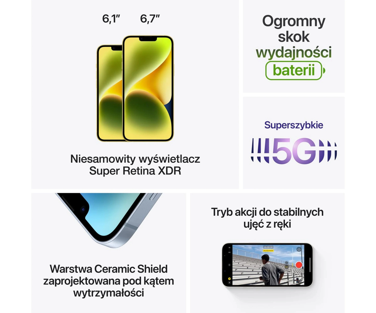 Najwydajniejsza bateria, najlepsza jakość zdjęć, dostępny już dziś w 6 kolorach! Ultrawyrazisty wyświetlacz Super Retina XDR, powłoka Ceramic Shield jest niewiarygodnie wytrzymała, wodoodporny, zbudowany z aluminium lotniczego