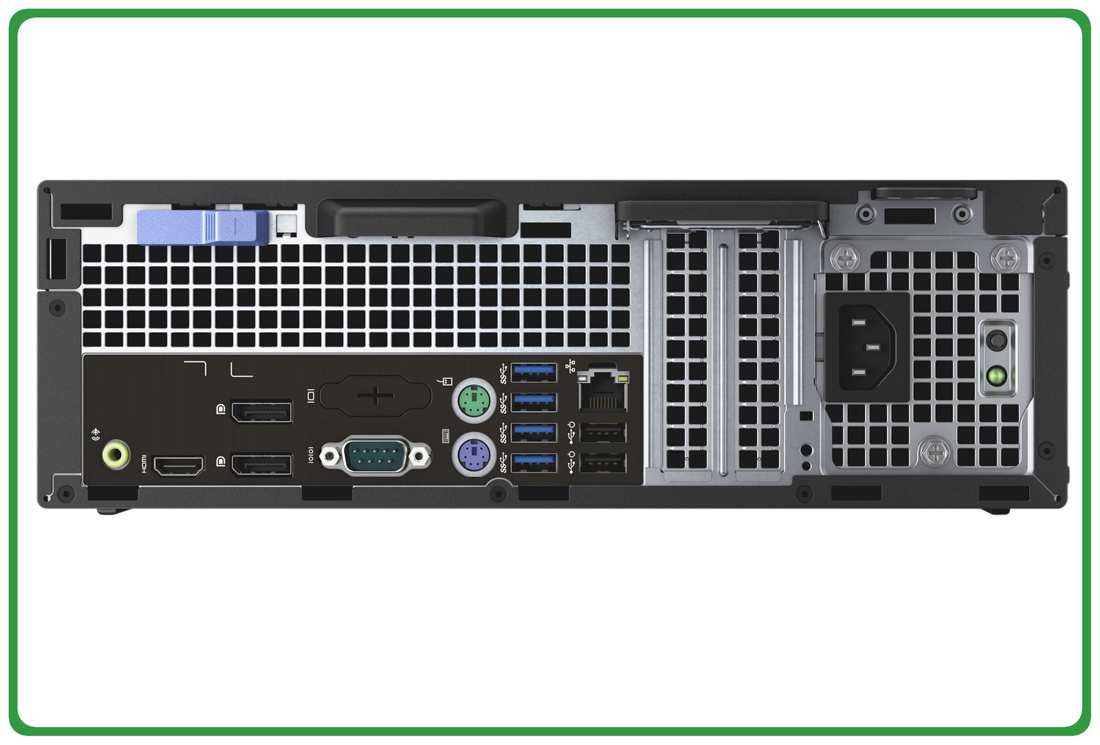 Dla najbardziej wymagających użytkowników Dell stworzył desktopy Optiplex serii 7000. Konstrukcje występują w trzech obudowach: MFF, SFF oraz MT. Najmniejsza dysponuje dwoma portami na moduły RAM, większe posiadają po cztery gniazda. W panelach tylnych znajdziesz po cztery porty USB 3.0, a w dużych obudowach również porty USB 2.0. Ulokowano tam ponadto złącza LAN, porty HDMI oraz opcjonalnie, jeden lub dwa porty Display Port. Obudowy SFF i MT posiadają również po dwa złącza PS/2 oraz po jednym RS-232.