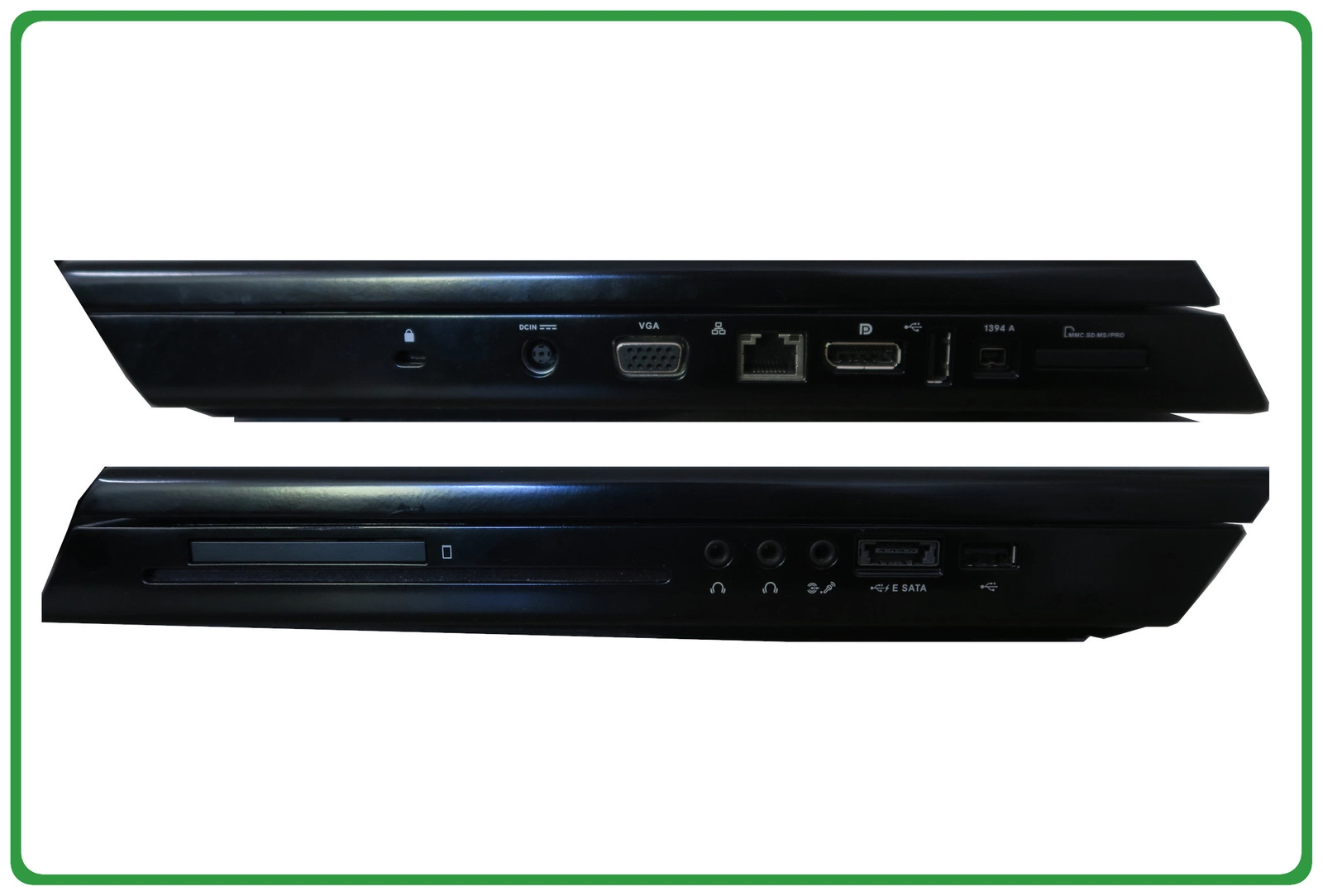 Złącza: minijack 3,5 mm (audio), USB 2.0 typ A, DisplayPort, D-Sub (VGA), ExpressCard, RJ-45