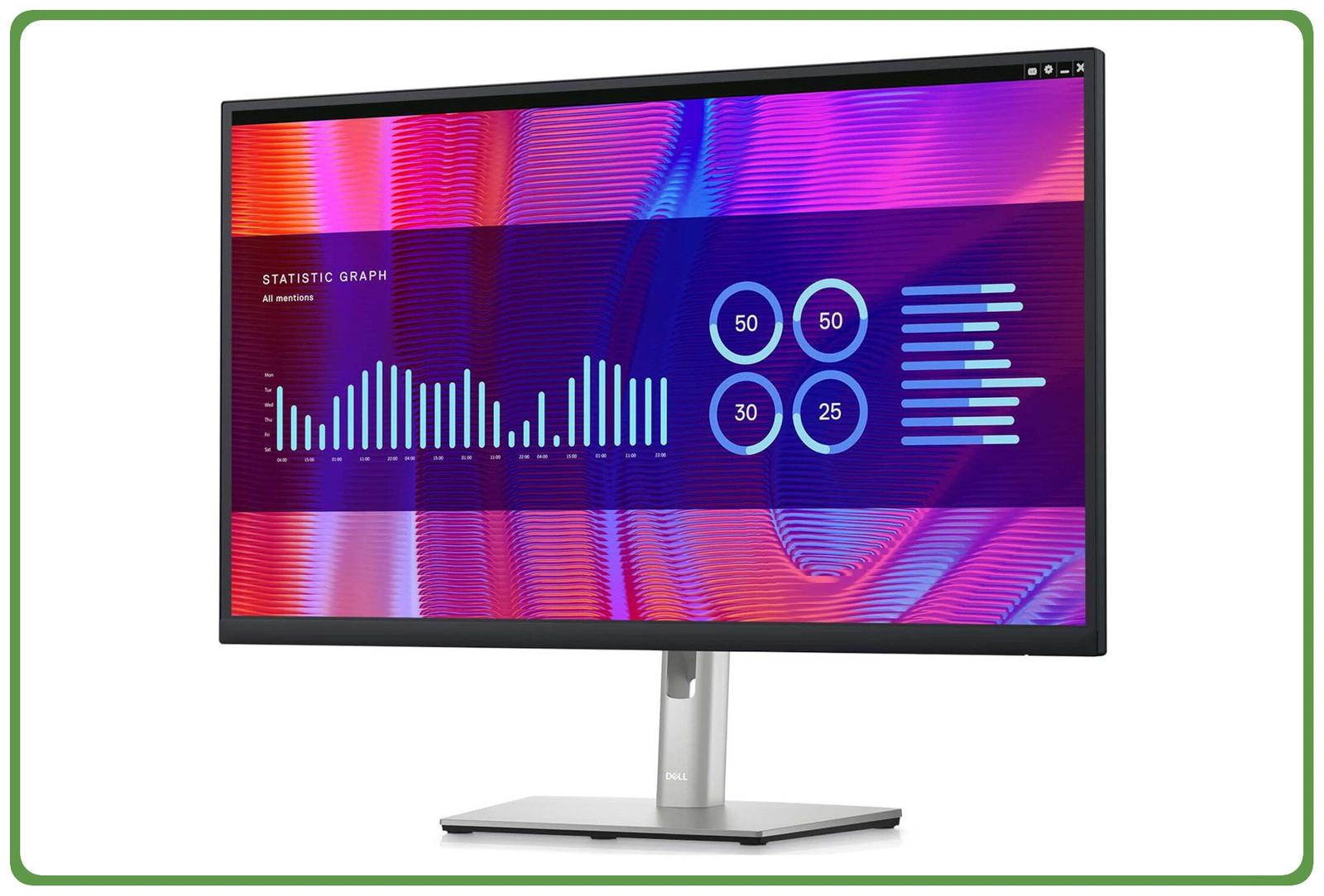 Atrakcyjne czarne wykończenie i niewielka ergonomiczna podstawa to świetne uzupełnienie udoskonalonego systemu rozmieszczenia kabli, który pozwala ukryć przewody w cokole monitora. Ustaw optymalną orientację monitora poprzez przechylanie, obracanie i zmianę wysokości o maksymalnie 150 mm.