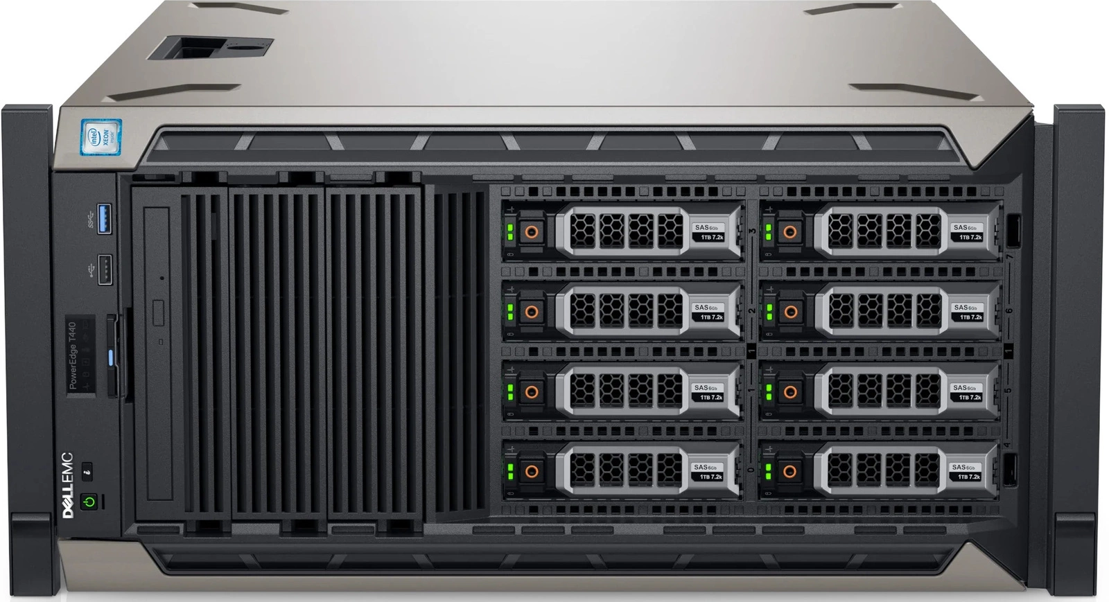 Serwer PowerEdge T440 zapewnia elastyczność dzięki platformie wieżowej przystosowanej do montażu w szafie serwerowej, krótkiej, 22-calowej głębokości i cichej akustyce, które są odpowiednie dla Twojego biura lub centrum danych. Model T440 doskonale nadaje się do obsługi szerokiej gamy obciążeń biurowych, w tym aplikacji do współpracy w grupach roboczych i zwiększania produktywności, poczty i wiadomości, obsługi plików i drukarek oraz obsługi sieci Web. Łatwa adaptacja do dynamicznych wymagań biznesowych dzięki opcjom wydajności, pojemności i we/wy.