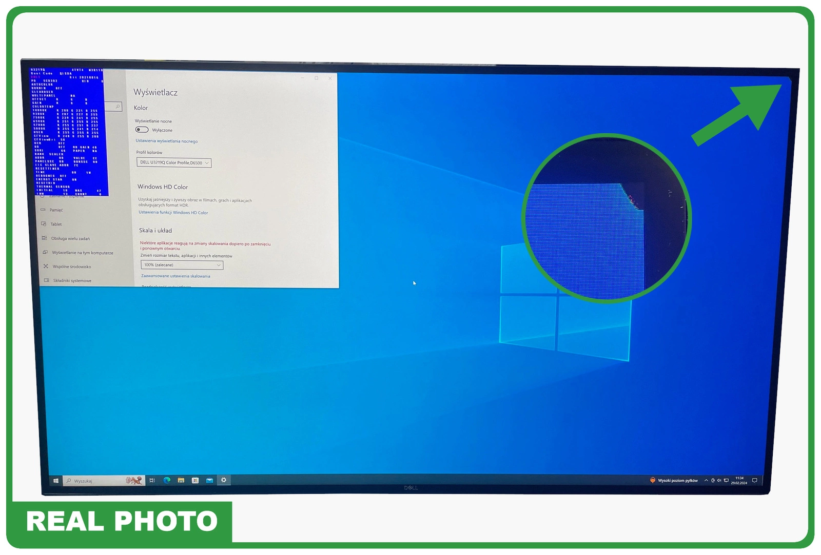✅ Stan wizualny dobry, sprzęt może posiadać niewielkie ryski na obudowie oraz ślady codziennego użytkowania. Monitor posiada lekko uszkodzoną matrycę w prawym górnym rogu. Wada ukazana na zdjęciach