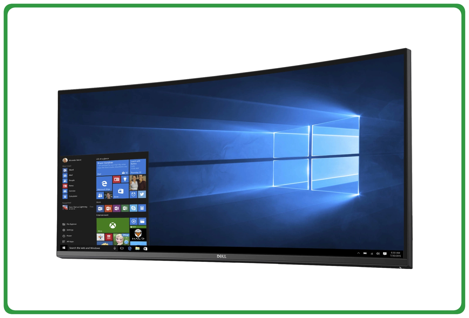 Rewelacyjny sposób wyświetlania obrazu: większa krzywizna ekranu zwiększa pole widzenia dzięki ograniczeniu odbić światła i niemal stałej ostrości obrazu. Pozwala to ograniczyć ruch oczu po ekranie, dzięki czemu można pracować wygodnie przez dłuższy czas.