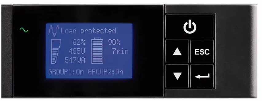 Intuicyjny wyświetlacz LCD został opracowany przez inżynierów producenta w celu ułatwienia konfiguracji i zarządzania. Gdy użytkownik nie posiada dostępu do oprogramowania, z pozycji wyświetlacza można zweryfikować wiele danych m.in. napięcie wejściowe i wyjściowe, wartość obciążenia, poziom naładowania baterii akumulatorów i szacowany czas podtrzymania bateryjnego.