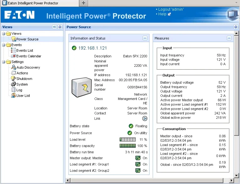 Eaton 5P650iR posiada wbudowane porty komunikacyjne USB oraz RS232, które umożliwiają użytkownikowi zarządzanie zasilaczem. Darmowe oprogramowanie Intelligent Power Protector® jest autorskim rozwiązaniem producenta i zapewnia monitorowanie i sterowanie UPS z poziomu przeglądarki internetowej. Pozwoli to na bezpieczne zamykanie komputerów PC lub serwerów. Współpracuje z niemal wszystkimi systemami operacyjnymi.