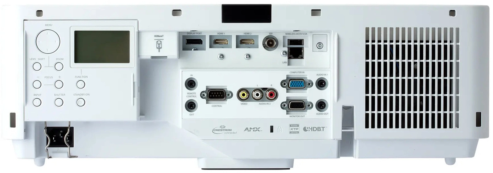 Audio pass through, Audio ports assign, Auto Eco Mode, Blending, Filter timer, Lens memory, My Button, My Memory, My Text, MyScreen, Overscan, PC-less presentation, Picture modes (normal, cinema, dynamic, blackboard, greenboard, whiteboard, daytime, DICOM simulation), Resolution setting, Source naming (English), Template, Instant stack, 360° vertical tilt, Active iris, Eco mode (Normal, Eco), Mechanical shade, Picture by Picture/ Picture in Picture, Remote ID, Status monitor, Accentualizer technology, iOS Connectivity, HDCR, Warping, AMX Device Discovery, Crestron RoomView® compatible, Extron XTP system compatible, Failure and Warning Alerts via E-mail, picture shift, portrait projection, image optimizer