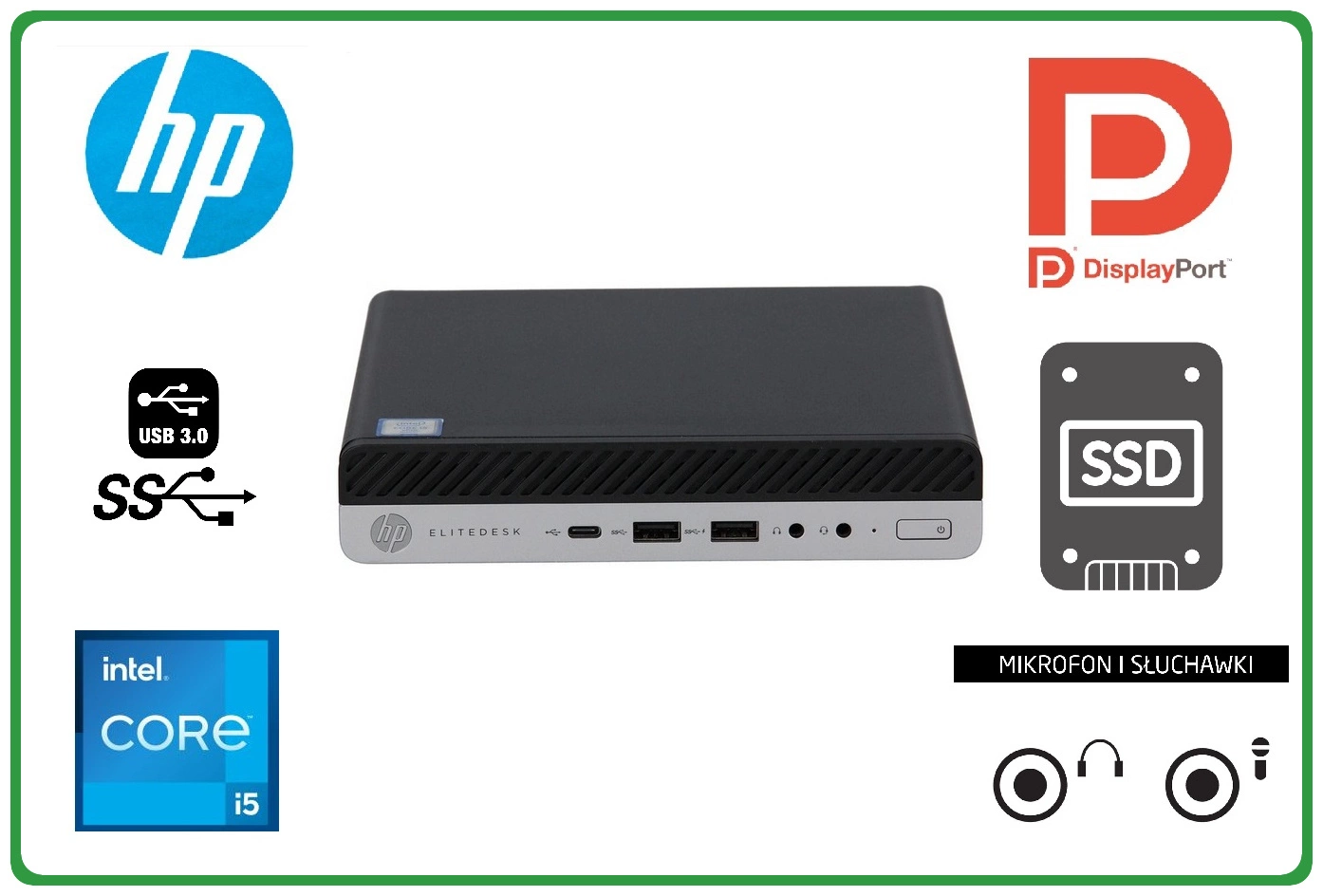 Złącza zewnętrzne płyty głównej: USB 2.0 typ A, USB 3.0 typ A, mini jack 3,5 (audio), RJ45, DisplayPort