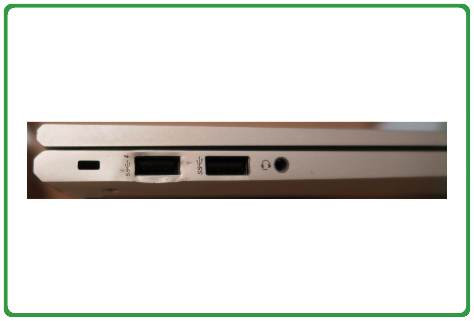 ✅ Stan wizualny bardzo dobry, możliwe lekkie zarysowania na obudowie oraz ślady wynikające z użytkowania, które nie wpływają na działanie urządzenia. Laptop posiada wygiętą obudowę przy jednym porcie USB. Zdjęcie wady widoczne na załączonym zdjęciu.