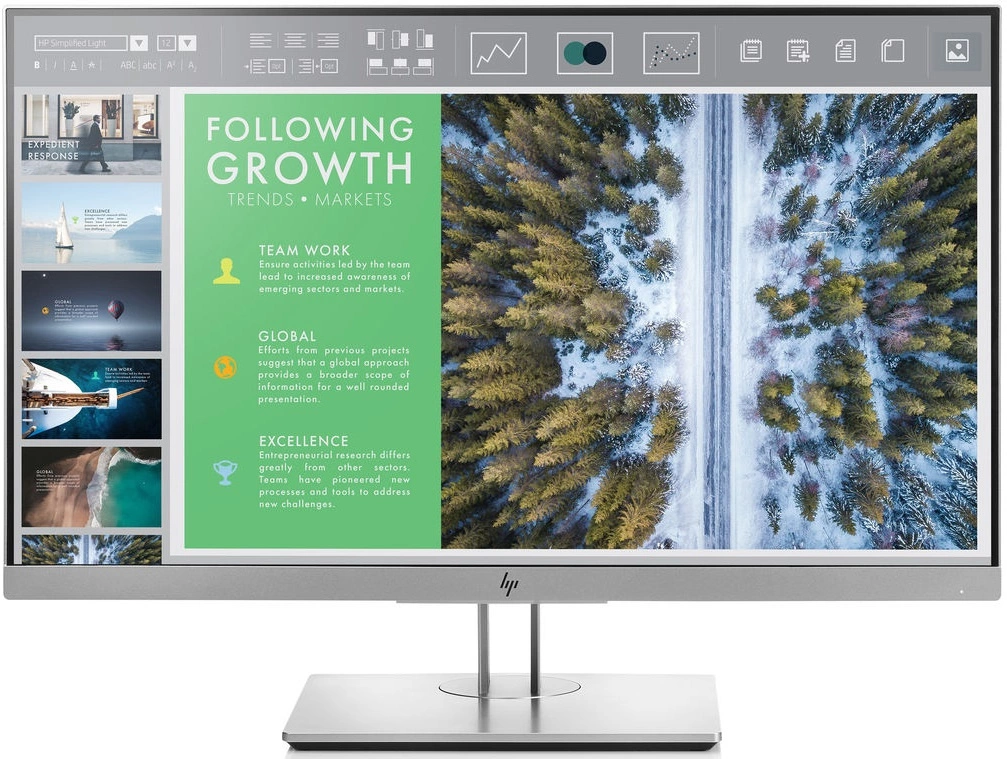 Duży ekran i wysoka rozdzielczość monitora HP EliteDisplay E243 doskonale sprawdzą się do zastosowań biznesowych. Matryca oferuje przestrzeń roboczą wystarczającą do sprawnej pracy, nawet z dużymi arkuszami. Dzięki temu widzisz wszystkie dane bez konieczności przewijania, co ułatwia i przyspiesza pracę. Co więcej, wysoka rozdzielczość zapewnia ostry jak brzytwa obraz, który pokochają Twoje oczy.