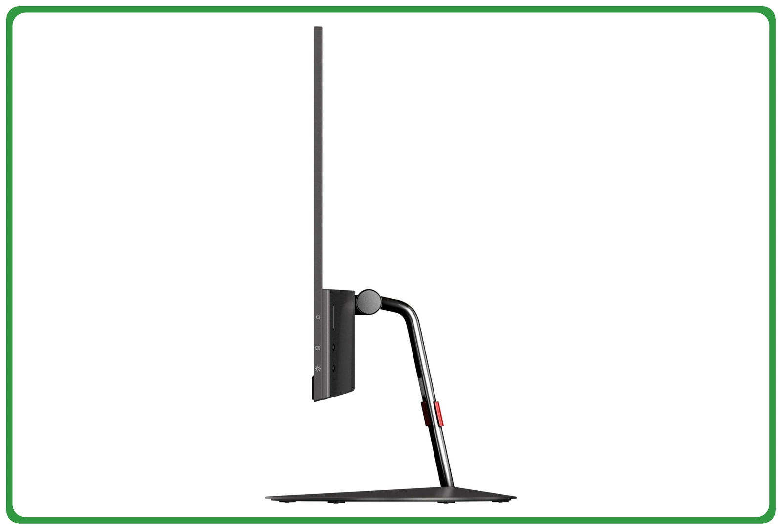 Dodatkowa elegancja: cienkie ramki, połyskujące wykończenie w kolorze czarnym i wspornik o barwie aluminium zapewniają nowoczesnych wygląd w każdym otoczeniu.