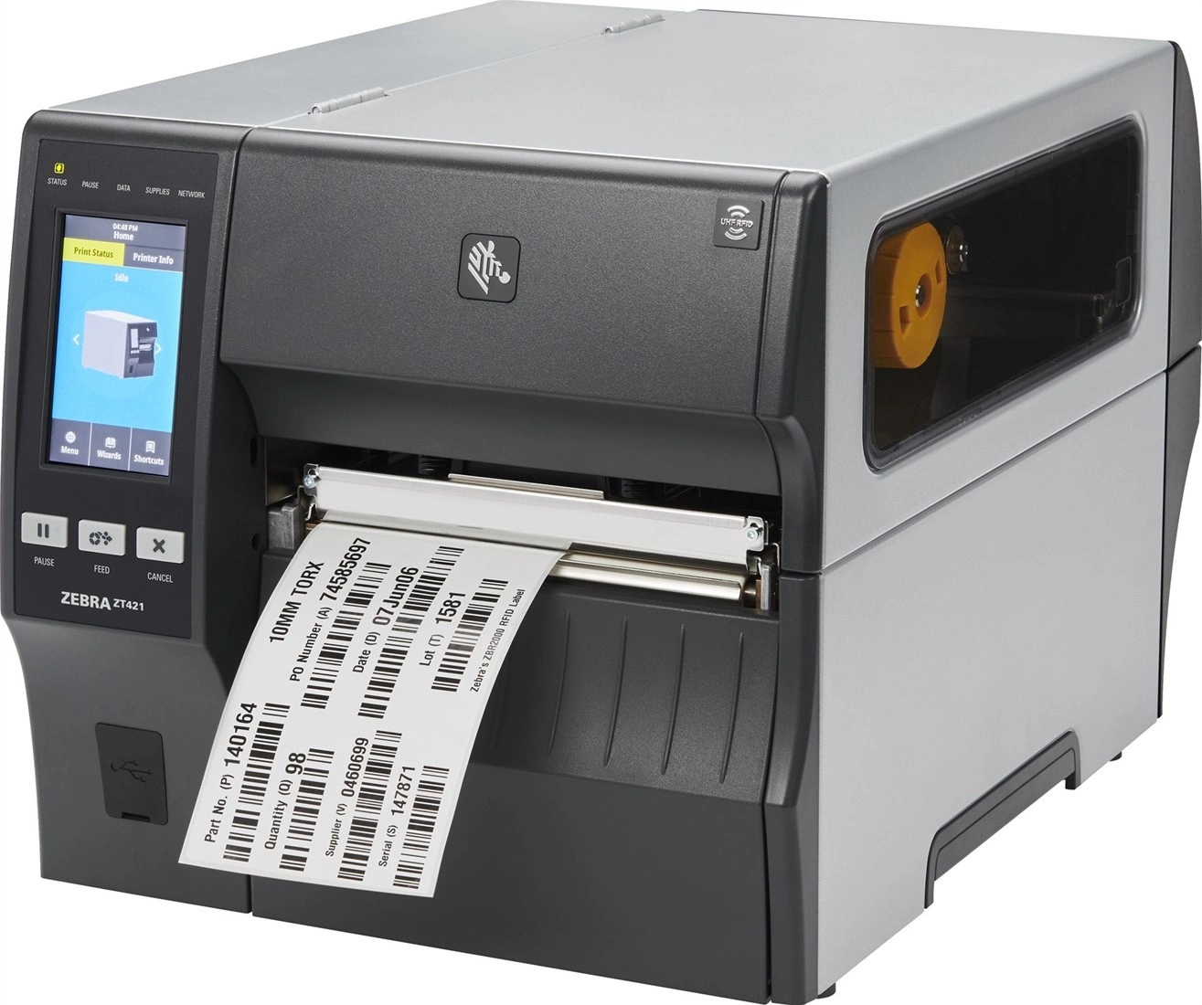 Zebra ZT421 to ulepszona wersja popularnej drukarki ZT420. Jej wyróżnikiem jest kolorowy ekran dotykowy o przekątnej 4,3”, dzięki któremu użytkownik ma możliwość zmiany konfiguracji urządzenia oraz podgląd podsumowania stanu (starszy model ZT420 posiadał ekran LCD). ZT421 drukuje termicznie jak i termotransferowo etykiety samoprzylepne o szerokości do 178 mm (max. szerokość druku 168 mm) w wybranej przez klienta przy zakupie rozdzielczości: 203 lub 300 dpi. Drukarka może się komunikować przez interfejsy przewodowe tj. USB, RS232 i Ethernet, ewentualnie bezprzewodowo przez Bluetooth 4.1. Metalowa obudowa zabezpieczająca predestynuje drukarkę do pracy w trudnym, wymagającym środowisku. Pakiet aplikacji i narzędzi programistycznych Zebra PrintDNA obsługiwanych przez system Link-OS® ułatwia ich integrację i zarządzanie.